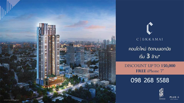 The Choice Property Development ร่วมมือกับ Plus Property เตรียมเปิด Pre-Sales ซี เอกมัย (C Ekkamai) คอนโดไฮไรส์ใหม่ บนทำเลศักยภาพย่านเอกมัย-ทองหล่อ ใจกลางกรุงเทพฯ เพียบพร้อมด้วย facility บนพื้นที่กว่า 1,500 ตร.ม. ในราคาที่ดีที่สุด 1 ห้องนอน เริ่มต้นเพียง 3 ล้านบาท วันที่ 12-13 พ.ย. นี้ ที่สำนักงานขายโครงการผู้ที่สนใจสามารถลงทะเบียนรับส่วนลดสูงสุด 150,000 บาท และ iPhone 7* ได้ที่นี่