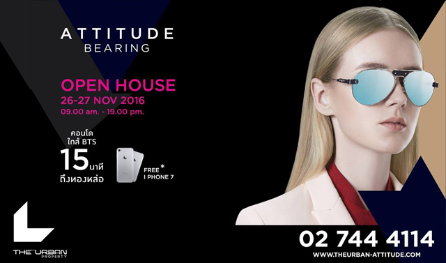 แอททิจูด แบริ่ง (Attitude Bearing) เปิดตัวอย่างเป็นทางการ พร้อมจัดงาน Open House 26 - 27 พ.ย. 59 นี้ ตั้งแต่เวลา 9.00 น. - 19.00 น. พบโปรโมชั่นสุดพิเศษ รับฟรี! iPhone7 พร้อมจัดเต็มของแถม 20 กว่ารายการ และอัพเดตลุคใหม่ล่าสุดของโครงการ พร้อมทั้งข่าวสาร ความคืบหน้าการก่อสร้าง และรายละเอียดการดำเนินงาน พร้อมจับฉลากของรางวัลพิเศษสำหรับทุกยูนิต* แพ็คแกจสวนน้ำระดับโลก Cartoon Network Amazone Waterpark พร้อมที่พักโรงแรมใหม่แกะกล่องที่พัทยาและอื่นๆ อีกมากมาย