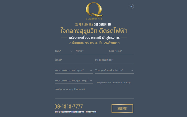 "Q Sukhumvit" คอนโดระดับซูเปอร์ ลักชัวรี่ใหม่ จากบริษัท ควอลิตี้ เฮ้าส์ จำกัด (มหาชน) ตั้งอยู่ใจกลางสุขุมวิท ติดรถไฟฟ้าสถานีนานา พร้อมทางเชื่อมเข้าสู่โครงการโดยตรง เอกสิทธิ์ที่จอดรถส่วนตัว โครงการนี้เป็นคอนโด High Rise 40 ชั้น ให้เพดานสูงถึง 3 เมตร มาพร้อมกับห้องขายแบบ Fully Fitted 5 แบบ รวม 273 ยูนิต พื้นที่ใช้สอยตั้งแต่ 92 - 356 ตร.ม. ให้สิ่งอำนวยความสะดวกระดับ High Class และที่จอดรถส่วนตัว 645 คัน หรือ 236% (พร้อมมอบโฉนดที่จอดรถให้) ในราคาเริ่ม 26.5 ล้านบาท ลงทะเบียนเพื่อรับสิทธิพิเศษ และพบกับรีวิว-เยี่ยมชมโครงการ Q Sukhumvit ฉบับเต็มเร็วๆ นี้