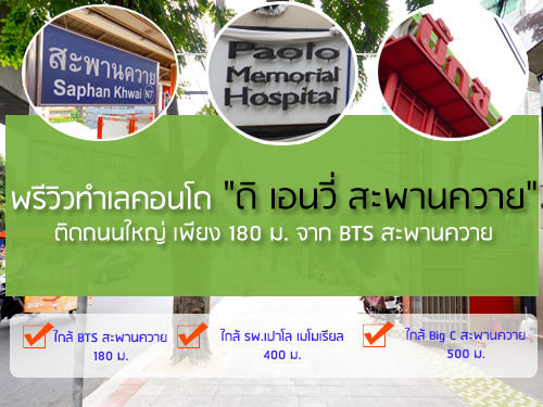 "ดิ เอนวี่ สะพานควาย (The Envi Saphankwai)" ติดถนนใหญ่ ใกล้ BTS สะพานควาย 180 เมตร ใกล้ทางพิเศษศรีรัช มาพร้อมกับคอนเซปต์ "รักษ์โลก รักเรา เพื่อสร้างสุขยั่งยืน" แวดล้อมด้วยสถานที่อำนวยความสะดวกต่างๆ อาทิ รพ.เปาโลเมโมเรีย บิ๊กซี สะพานควาย ลงทะเบียนเพื่อรับสิทธิพิเศษได้ที่นี่