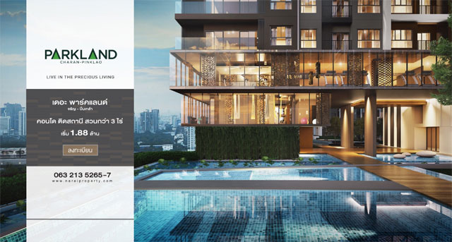 เดอะ พาร์คแลนด์ จรัญฯ-ปิ่นเกล้า (The Parkland Charan-Pinklao) คอนโดภายใต้แนวคิด "Living in the Art of Precious Living" ติดรถไฟฟ้า MRT สายสีน้ำเงิน สถานีบางยี่ขัน เพียง 20 เมตร พร้อม Facilities จัดเต็ม พื้นที่สวนสีเขียวขนาดใหญ่กว่า 3 ไร่ เพลิดเพลินไปกับ Botanic Garden, Pool Pavilion และ Sunken Seat ราคาเริ่มต้น 1.88 ล้าน