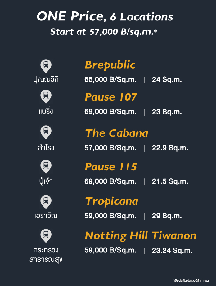 บริษัท ออริจิ้น พร็อพเพอร์ตี้ จำกัด (มหาชน) โปรโมชั่นคอนโดพร้อมอยู่ราคาเดียว บนถนนสุขุมวิท เดินทางสะดวก ด้วย BTS และ MRT ได้แก่