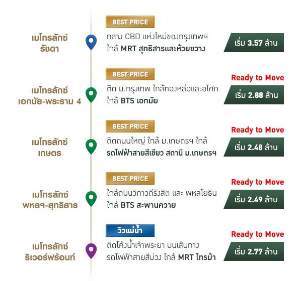 พร็อพเพอร์ตี้ เพอร์เฟค เชิญสัมผัสคอนโดหรู Metro Luxe บน 5 ทำเลศักยภาพ ได้แก่