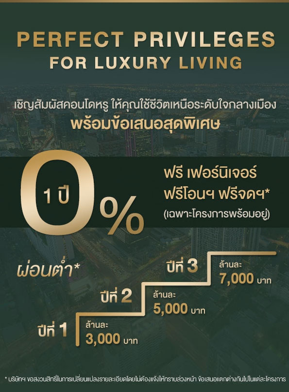ตอบโจทย์การเดินทางได้สูงสุด พิเศษด้วย PERFECT SHUTTLE SERVICE* บริการรับ-ส่ง ถึงสถานีรถไฟฟ้า BTS/MRT สะดวกรวดเร็ว พร้อมข้อเสนอพิเศษ รับดอกเบี้ย 0% นาน 1 ปี ฟรีเฟอร์นิเจอร์ ฟรีค่าใช้จ่าย ณ วันโอนฯ ฟรีจดทะเบียน (เฉพาะโครงการพร้อมอยู่) และสามารถลงทะเบียนเพื่อรับสิทธิพิเศษเพิ่มได้ที่ลิงก์ด้านล่างนี้