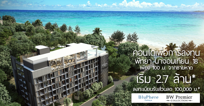 "BluPhere Pattaya" คอนโดเพื่อการลงทุนแห่งใหม่ พัทยา นาจอมเทียน 18 เพียง 100 ม.จากหาด
