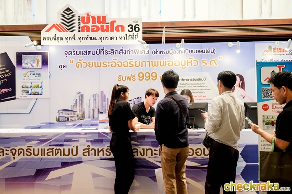 ซุ้มประตูงานมหกรรมบ้านและคอนโดครั้งที่ 36 บริเวณทางขึ้นโซน Plaza และสำหรับผู้ที่จองซื้อที่อยู่อาศัยภายในงานทุก 300,000 บาท จะได้รับคูปองชิงโชค 1 ใบ เพื่อใช้ลุ้นรับบัตรกำนัลส่วนลดเงินสด มูลค่า 1 ล้านบาท 1 รางวัล