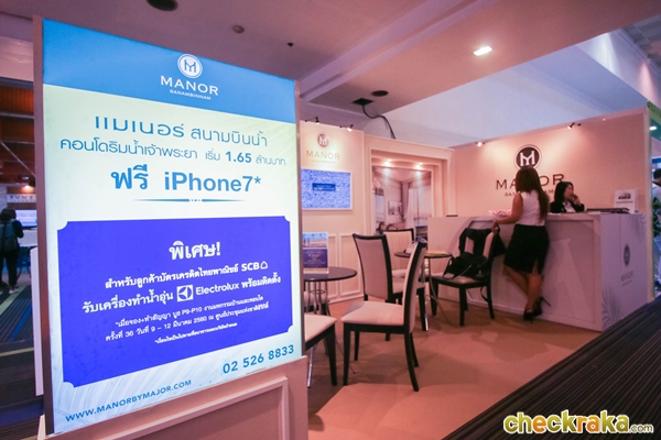 เมเจอร์ฯ นำโครงการแมเนอร์ สนามบินน้ำมาร่วมงาน เป็นคอนโดริมแม่น้ำเจ้าพระยา พร้อมอยู่ ราคาเริ่มต้น 1.65 ล้านบาท รับฟรี iPhone 7* เมื่อจองพร้อมทำสัญญาภายในงาน พิเศษสำหรับลูกค้าบัตรเครดิตไทยพาณิชย์ รับเครื่องทำน้ำอุ่น Electrolux พร้อมติดตั้ง