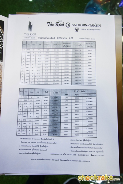 ใบราคาโครงการ เดอะริช @ สาทร - ตากสิน ราคาเริ่มต้น 2.5 ล้าน จองเพียง 5,000 บาท