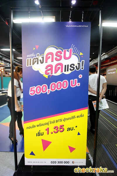 ออริจิ้น ก็ไม่พลาดที่จะเข้าร่วมงานนี้เช่นกัน ขนทัพ 15 โครงการ ราคาเริ่มต้น 1.35 ล้านบาท มาพร้อมแคมเปญ "แต่งครบ ลดแรง 500,000 บาท" ให้ผู้จองซื้อโครงการต่างๆ ในงานได้รับสิทธิส่วนลดสุดพิเศษ นอกจากนี้ ยังมีแคมเปญอื่นๆ อีกมากมายสำหรับแต่ละโครงการ อาทิ จอง 1 พัน ลุ้น 1 ล้าน อยู่ฟรี 1 ปี หรือจองปั๊บ รับ iPhone7