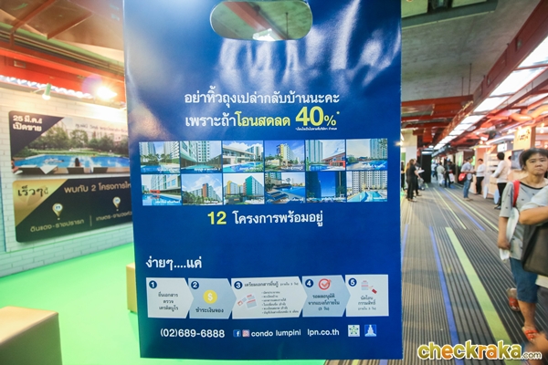ซื้อสด ลด 40%* กับคอนโดลุมพินี 12 โครงการพร้อมอยู่ 7 ทำเล ที่สะดวกสบายต่อการเดินทาง โบรชัวร์ออกแบบเป็นถุงกระดาษใส่ของได้ด้วยเก๋มากค่ะ