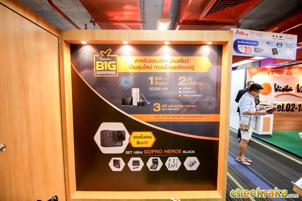บูธใหญ่อย่างศุภาลัยก็ยกขบวนบ้านและคอนโดเข้าร่วมงานอย่างคับคั่ง มาพร้อมแคมเปญ Supalai Big Surprise สำหรับบ้านเดี่ยว บ้านรุ่นใหม่ ทาวน์โฮม และคอนโดฯ พร้อมอยู่ พร้อมรับสิทธิพิเศษ 3 ต่อ