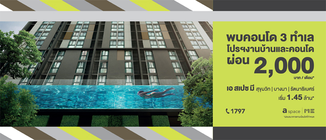 บริษัท อารียา พรอพเพอร์ตี้ จำกัด (มหาชน) มอบโปรโมชั่นพิเศษ โอกาสสุดท้าย! รับโปรฯ งานบ้านและคอนโด กับคอนโดมิเนียมแบรนด์ "เอ สเปซ มี" ใน 3 ทำเลศักยภาพ ใกล้รถไฟฟ้า 18-19 มีนาคม 2560 นี้ ผ่อน 2,000/เดือน ราคาเริ่ม 1.45 ล้านบาท