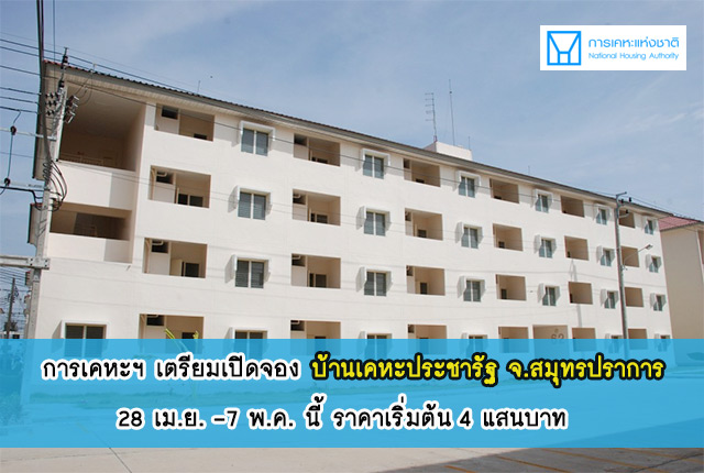 การเคหะฯ เตรียมเปิดจองบ้านเคหะประชารัฐ จ.สมุทรปราการ 28 เม.ย. - 7 พ.ค. นี้ ราคาเริ่มต้น 4 แสนบาท