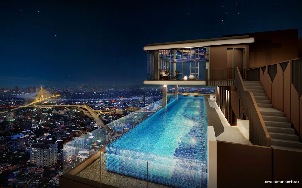 ภาพจำลองบรรยากาศสระว่ายน้ำของโครงการ