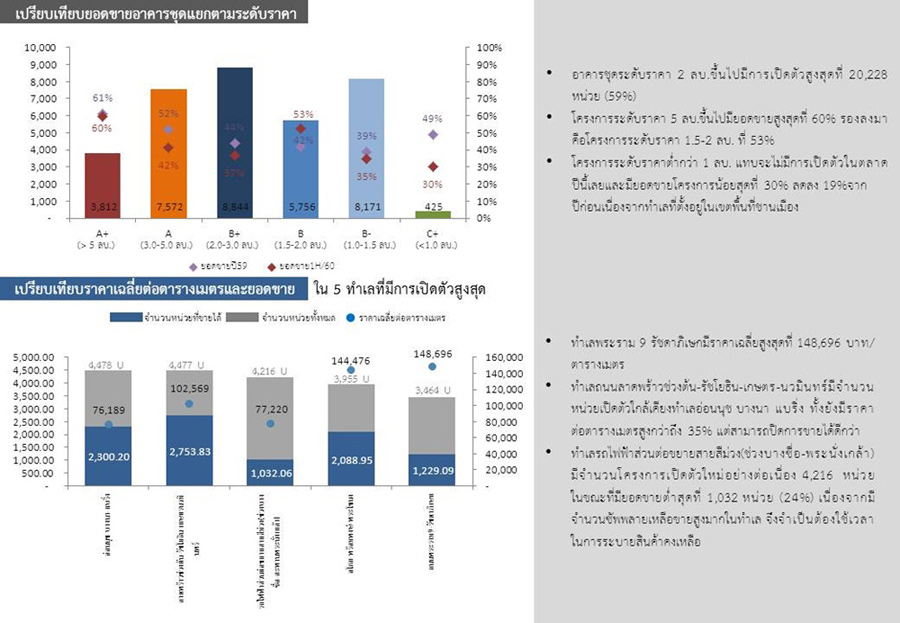 - โครงการระดับราคาต่ำกว่า 1 ล้านบาท แทบไม่มีการเปิดตัว ในขณะที่กลุ่ม 3 ล้านบาทขึ้นไปมีการเปิดตัวสูงขึ้นอย่างต่อเนื่อง