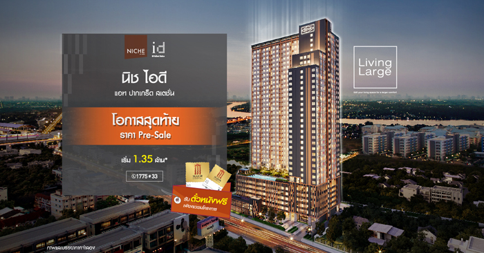 นิช ไอดี ปากเกร็ด สเตชั่น (Niche id @ Pakkret Station) มาพร้อมกับ Concept "เต็มพิกัดกับชีวิต ฟิตกับตัวตนของคุณ" ในราคาเริ่มต้น 1.35 ล้านบาท* พิเศษลงทะเบียนพร้อมเข้าชมโครงการ รับไปเลยตั๋วหนังฟรี