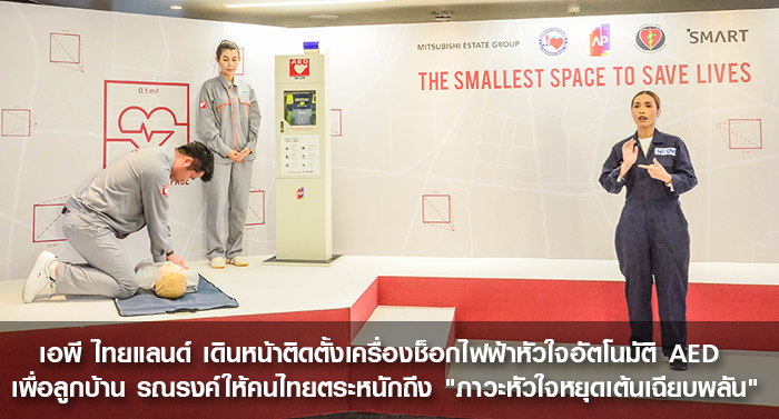 บริษัท เอพี (ไทยแลนด์) จำกัด (มหาชน) ผู้นำด้านการพัฒนาโครงการอสังหาริมทรัพย์สำหรับคนเมืองและคอนโดมิเนียมติดแนวรถไฟฟ้า จัดแถลงข่าวเปิดตัวแคมเปญเพื่อสังคม "ขอพื้นที่เล็กๆ ให้หัวใจได้เต้นต่อ" (The Smallest Space to Save Lives) ต่อยอดแนวคิดในการพัฒนาอสังหาริมทรัพย์คุณภาพไปสู่การส่งเสริมคุณภาพชีวิตที่ดีให้เกิดขึ้นในสังคมเอพีและสังคมวงกว้าง ด้วยการตระหนักถึงอันตรายจาก "ภาวะหัวใจหยุดเต้นเฉียบพลัน" ที่คร่าชีวิตคนไทยได้ในทุกเพศ ทุกวัย ด้วยการเดินหน้าติดตั้งเครื่องช็อกไฟฟ้าหัวใจอัตโนมัติ (AED) ในคอนโดมีเนียมของเอพีที่ส่งมอบไปแล้ว รวมถึงคอนโดมิเนียมโครงการอื่นๆ ที่บริหารจัดการโดยบริษัท สมาร์ท เซอร์วิส แอนด์ แมนเนจเมนท์ จำกัด บริษัทบริหารจัดการอสังหาริมทรัพย์ในเครือเอพี รวมทั้งสิ้นกว่า 40 โครงการ คิดเป็นผู้อยู่อาศัยกว่า 25,000 ครอบครัว และเตรียมร่วมรณรงค์ส่งต่อความรู้การกู้ชีพขั้นพื้นฐานก่อนส่งถึงมือแพทย์สู่ประชาชน เพื่อให้ตระหนักและพร้อมรับมือเมื่อพบผู้ประสบภาวะดังกล่าว ทั้งนี้ จากสถิติพบว่าภาวะหัวใจหยุดเต้นเฉียบพลันคือสาเหตุการเสียชีวิตสูงสุดอันดับที่ 3 (รองจากมะเร็งและอุบัติเหตุ) คร่าชีวิตคนไทยถึง 54,000 คนต่อปี (เฉลี่ยถึง 6 คนต่อชั่วโมง) ปัจจุบันเอพีได้เริ่มทยอยติดตั้งเครื่องช็อกไฟฟ้าหัวใจอัตโนมัติ AED ในคอนโดมีเนียมที่บริหารจัดการโดยทีมเอพีแล้ว โดยแผนจะติดตั้งให้ครบทั้งสิ้นกว่า 40 โครงการที่โอนกรรมสิทธิ์เข้าอยู่แล้ว