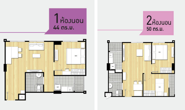- แบบ 2 ห้องนอน ขนาด 50 ตร.ม.
