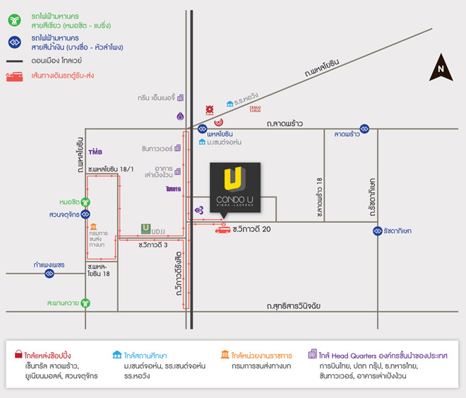 ที่นี่ถือเป็นทำเลที่เดินทางสะดวกทุกเส้นทาง เพราะตั้งอยู่เกือบริมถนนใหญ่ วิภาวดีรังสิต ในซอยวิภาวดีรังสิต 20 (ติดการบินไทย สำนักงานใหญ่) เส้นทางหลักสำหรับเข้า หรือออกเมือง และยังมีเส้นทางลัดมากมายให้คุณเดินทางสู่ถนนลาดพร้าว และรัชดาภิเษกได้สะดวกรวดเร็ว รวมทั้งยังใกล้กับ MRT สถานีพหลโยธิน และ BTS สถานีจตุจักร ซึ่งใช้เวลาเดินทางเพียงเล็กน้อย หากคุณต้องการพักผ่อนนอกบ้าน หรือช้อปปิ้งก็มีให้เลือกหลากหลายแนว เช่น