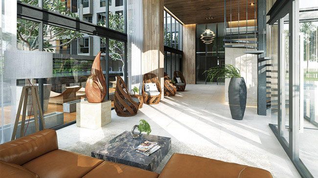 ภาพจำลองห้องชุดพักอาศัย สาธารณูปโภคภายในโครงการ - ล็อบบี้ขนาดใหญ่ เชื่อมต่อไปยังสระว่ายน้ำ