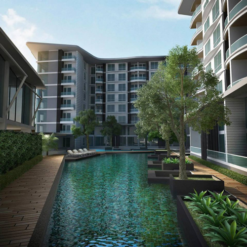 ภาพจำลองโครงการแสดงทำเลที่ใกล้หาดจอมเทียน รูปแบบคอนโด และขนาดพื้นที่โครงการ