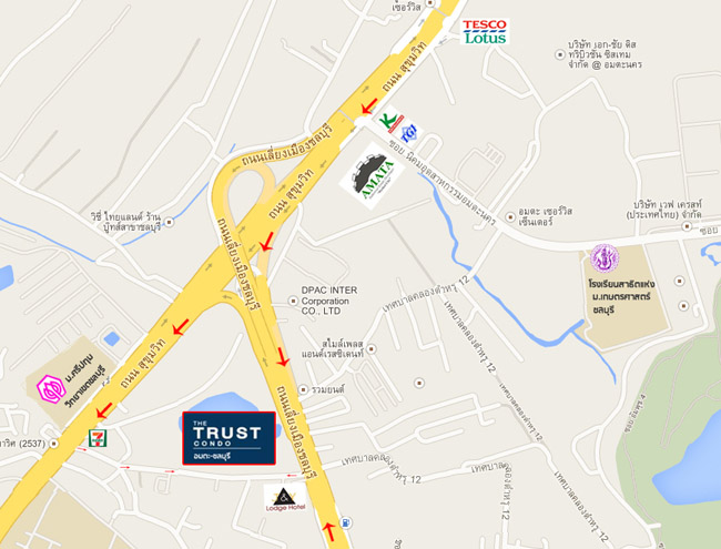แผนที่โครงการ เดอะ ทรัสต์ คอนโด อมตะ-ชลบุรี