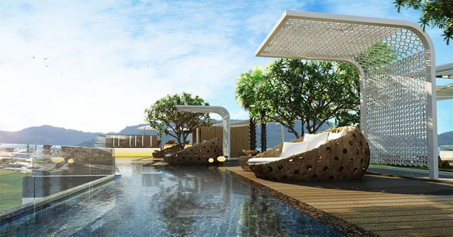 สวนลอยฟ้าบนชั้นดาดฟ้าพร้อมสระว่ายน้ำแบบอินฟินิตี้ทุกอาคาร (Luna miracle common facilities building)
