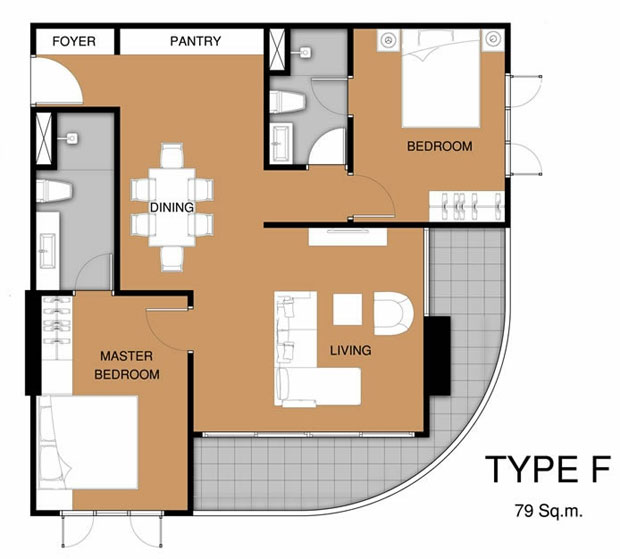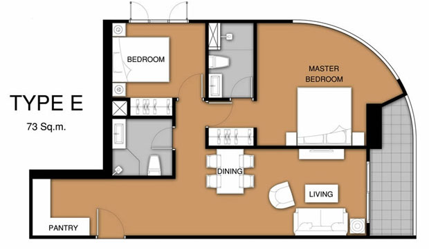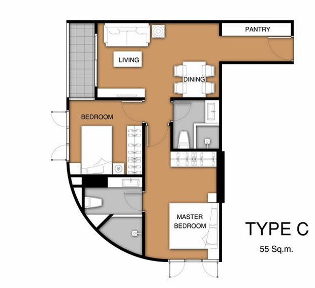 - 2 ห้องนอน ขนาด 55, 65 และ 73 ตารางเมตร