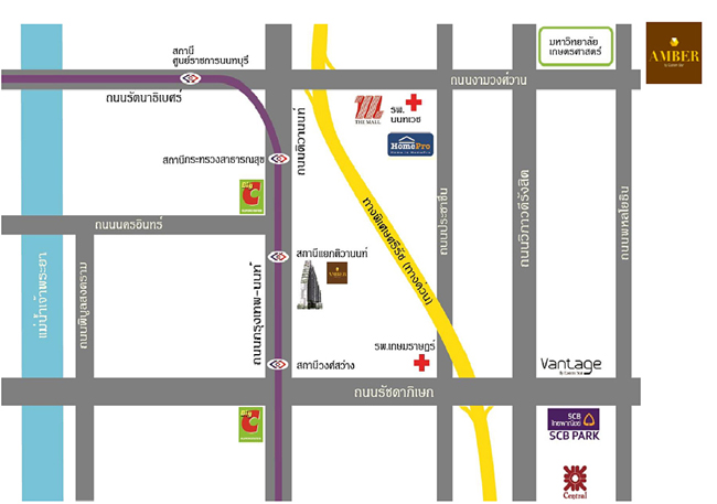 แผนที่โครงการ แอมเบอร์ บาย อีสเทิร์น สตาร์ รูปแบบคอนโด และขนาดพื้นที่โครงการ - คอนโดมิเนียมเป็นแบบ High-rise สูง 37 ชั้น จำนวน 1 อาคาร