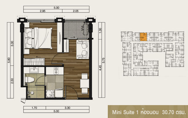 - แบบ Mini Suite (MS) 1 ห้องนอน พื้นที่ใช้สอยขนาดตั้งแต่ 29.50 - 35.70 ตร.ม.