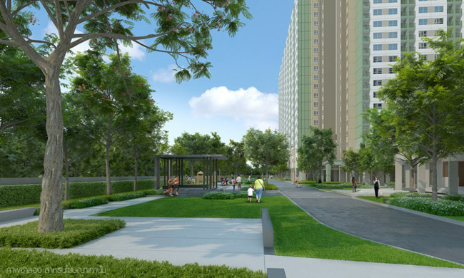 ภาพจำลองบรรยากาศสวนสีเขียวภายในโครงการ