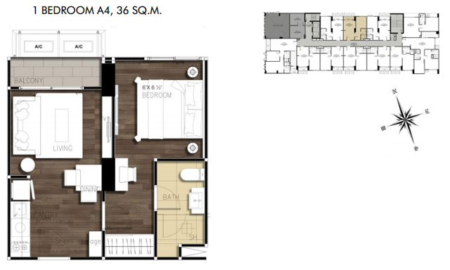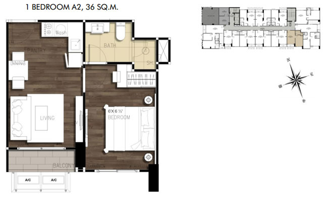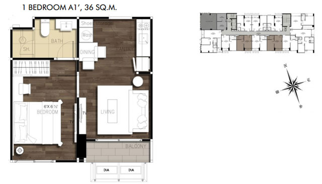 - แบบ 1 ห้องนอน พื้นที่ใช้สอยขนาด 36-40 ตร.ม.