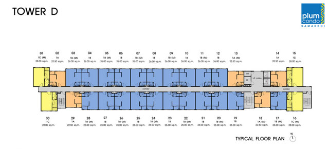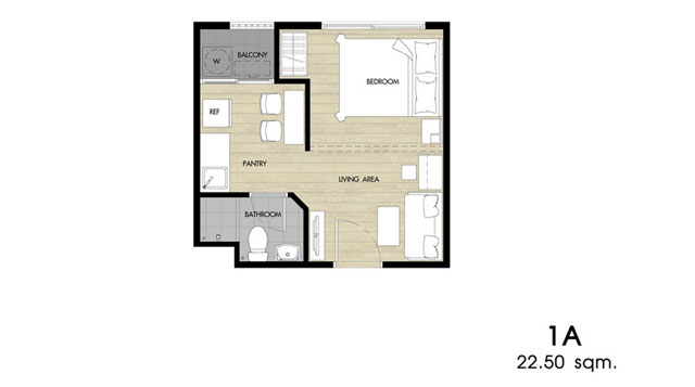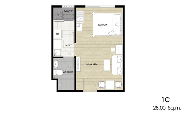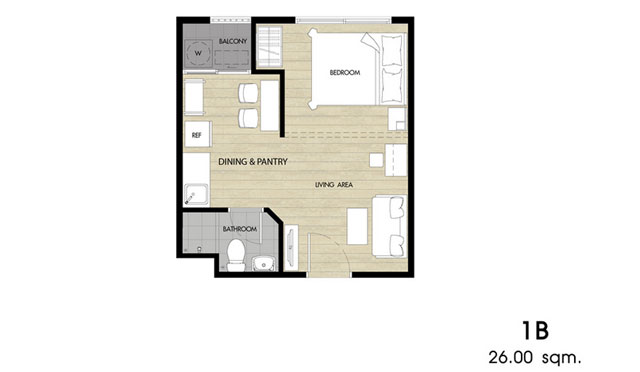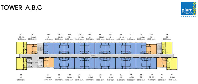 - แบบ 1 ห้องนอน ขนาด 22.50, 26 และ 28 ตร.ม.