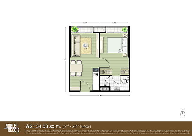 - แบบ 1 ห้องนอน ขนาด 34-45 ตร.ม.