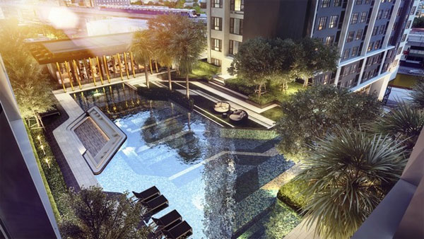 ภาพจำลองบรรยากาศสวนสีเขียวขนาดใหญ่ของโครงการ
