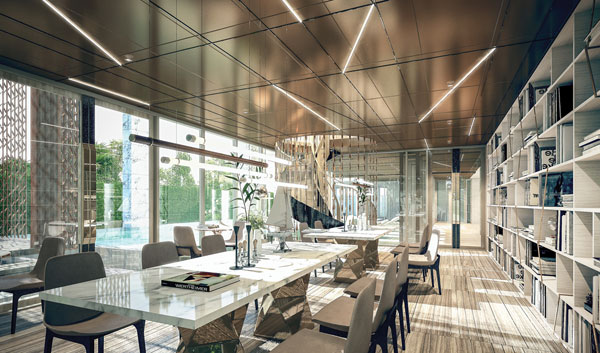 ภาพจำลองบรรยากาศโถงล็อบบี้ และพื้นที่รับแขก