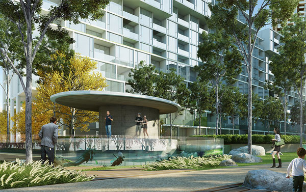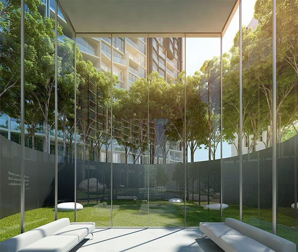 ภาพจำลองบรรยากาศสวนสีเขียวในโครงการ