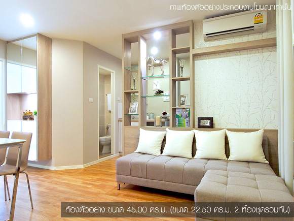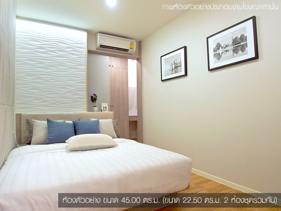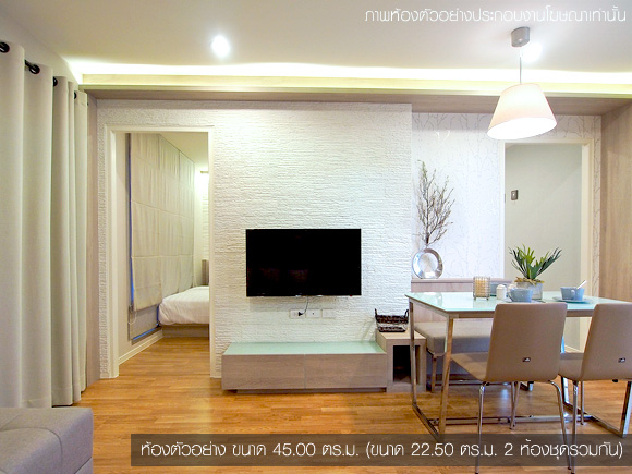 - แบบ 2 ห้องนอน (Combine 2 ห้องชุดรวมกัน) พื้นที่ใช้สอยขนาด ขนาด 43.00 - 45.00 ตร.ม.