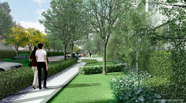 ภาพจำลองบรรยากาศพื้นที่สีเขียวบริเวณโดยรอบโครงการ