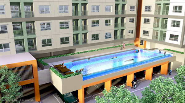 ภาพจำลองบรรยากาศสระว่ายน้ำภายในโครงการ