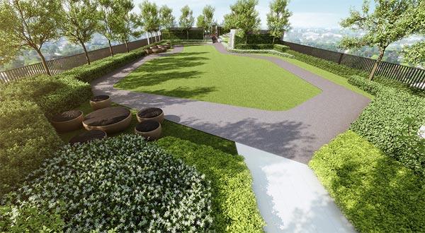 ภาพจำลองบรรยากาศมุมบาร์บีคิวและพื้นที่สีเขียวบนชั้นดาดฟ้า