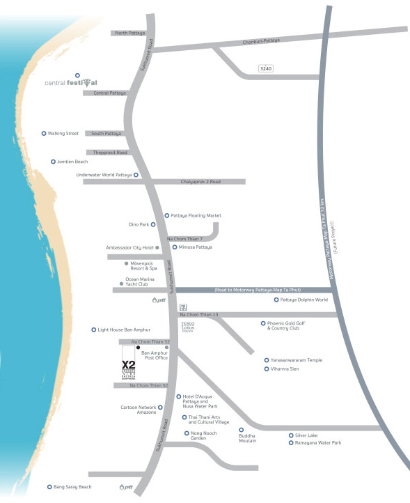 แผนที่โครงการ คอนโดครอสทู ไวบ์ พัทยา ซีเฟียร์