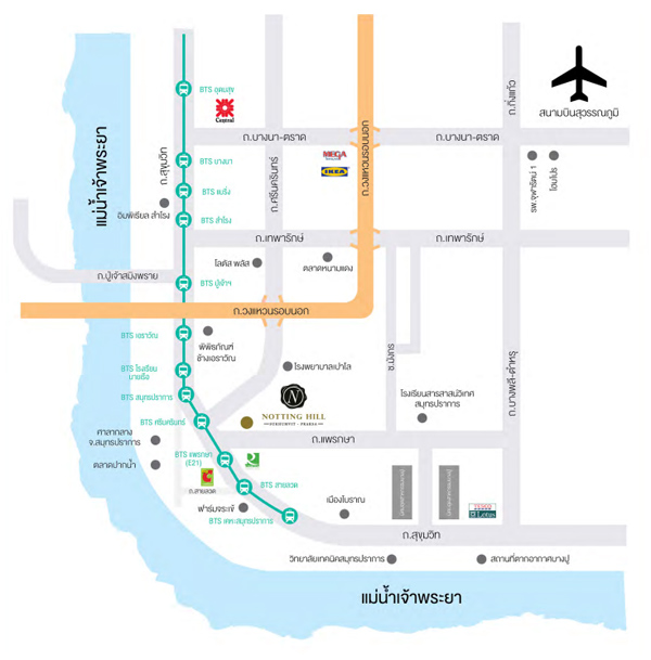 แผนที่แสดงที่ตั้งโครงการ "น็อตติ้งฮิลล์ สุขุมวิท-แพรกษา"