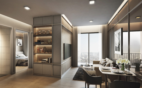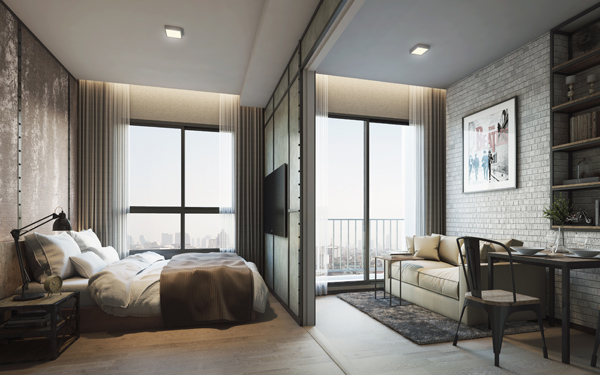 ภาพจำลองบรรยากาศภายในห้องพักแบบ 1 ห้องนอน ขนาด 23 ตร.ม.
