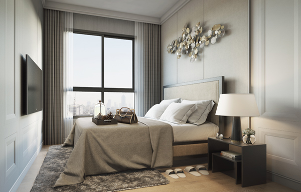 ภาพจำลองบรรยากาศภายในห้องพักแบบ 1 ห้องนอน ขนาด 40 ตร.ม. สาธารณูปโภคภายในโครงการ