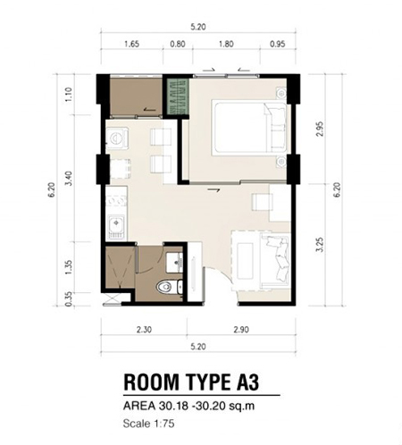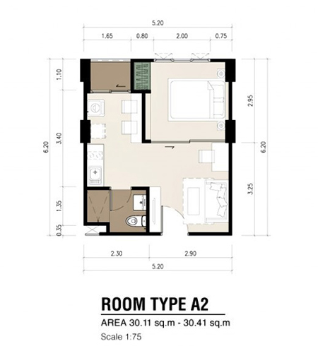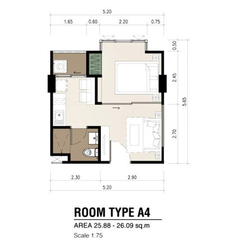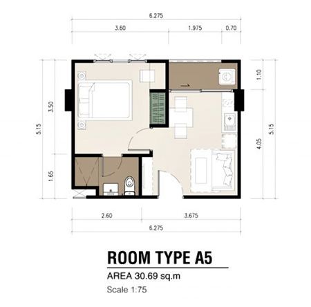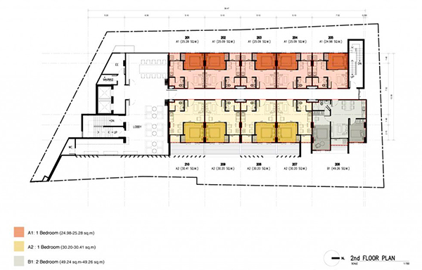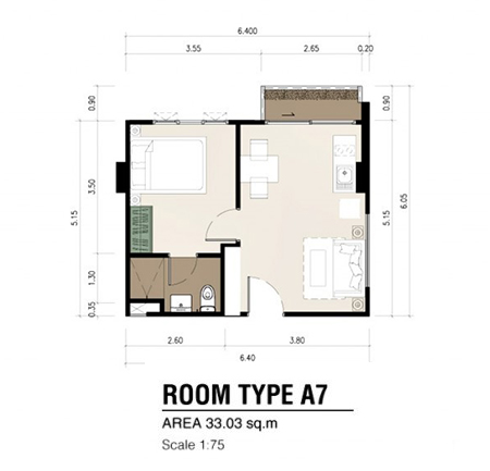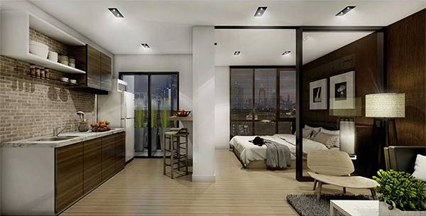 - แบบ 1 ห้องนอน ขนาดพื้นที่ใช้สอยตั้งแต่ 24.98 - 37.69 ตร.ม.