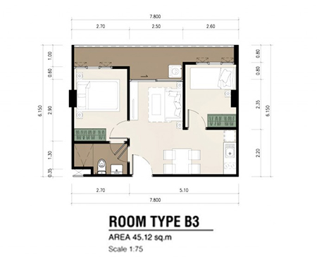 *หมายเหตุ ขนาดห้องอาจมีการเปลี่ยนแปลงได้ โปรดสอบถามข้อมูลอีกครั้งจากทางโครงการ