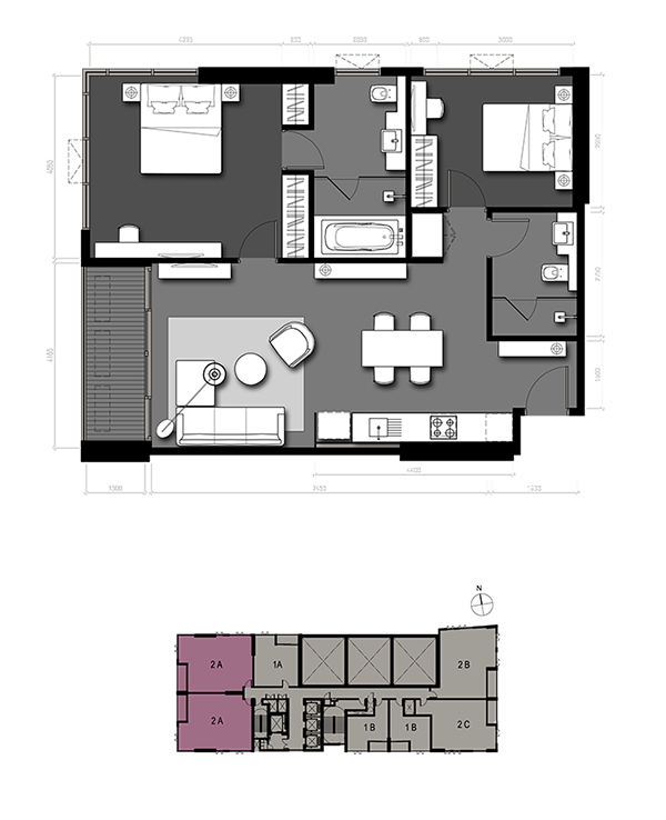 แบบ 2A 2 Bedrooms / 87 sq.m. Lofts Zone (3