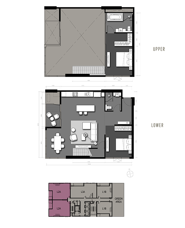 แบบ L2A 2 Bedrooms Duplex / 120 sq.m. Sky Lofts Zone (31 - 37 Fl.)