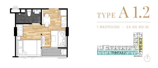 Unit Plan Type A1.2 แบบ 1 ห้องนอน ขนาด 24.60 ตร.ม.